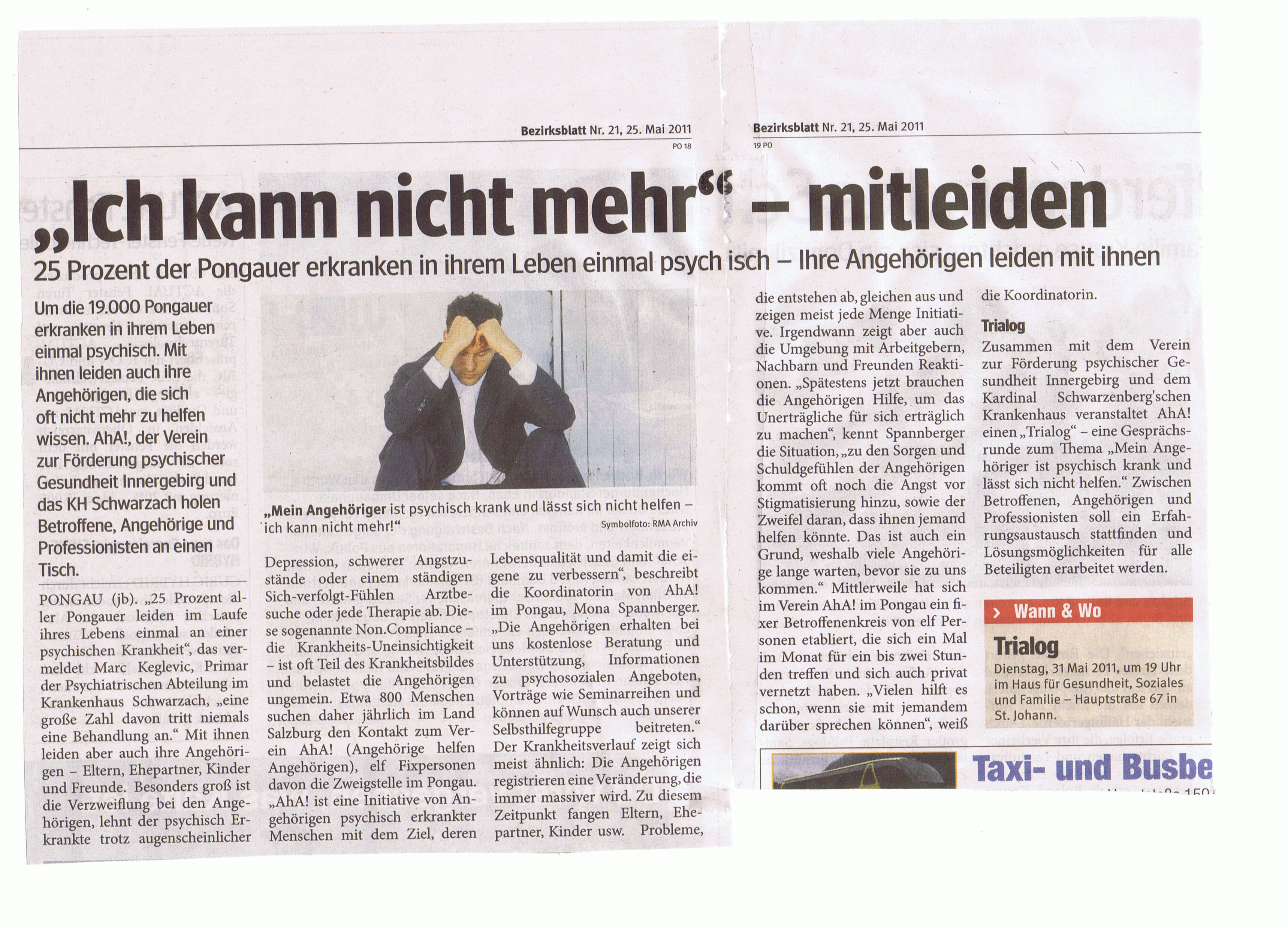 Gemeinsam sind wir stärker! AhA! engagiert sich in Verbänden und Gremien, um auch dort die Anliegen der Angehörigen einzubringen und gemeinsam mit diesen Akteuren bei PolitikerInnen und im Gesundheitswesen Verbesserungen im psychosozialen Bereich zu erwirken. Liste mit jeweiliger Verlinkung HPE Österreich (Hilfe für Angehörige und Freunde psychisch Erkrankter) EUFAMI (European Federation of Associations of Families of People with Mental Illness) Kuratorium für psychische Gesundheit Dachverband Selbsthilfe Salzburg Plattform Psychiatrie Salzburg |